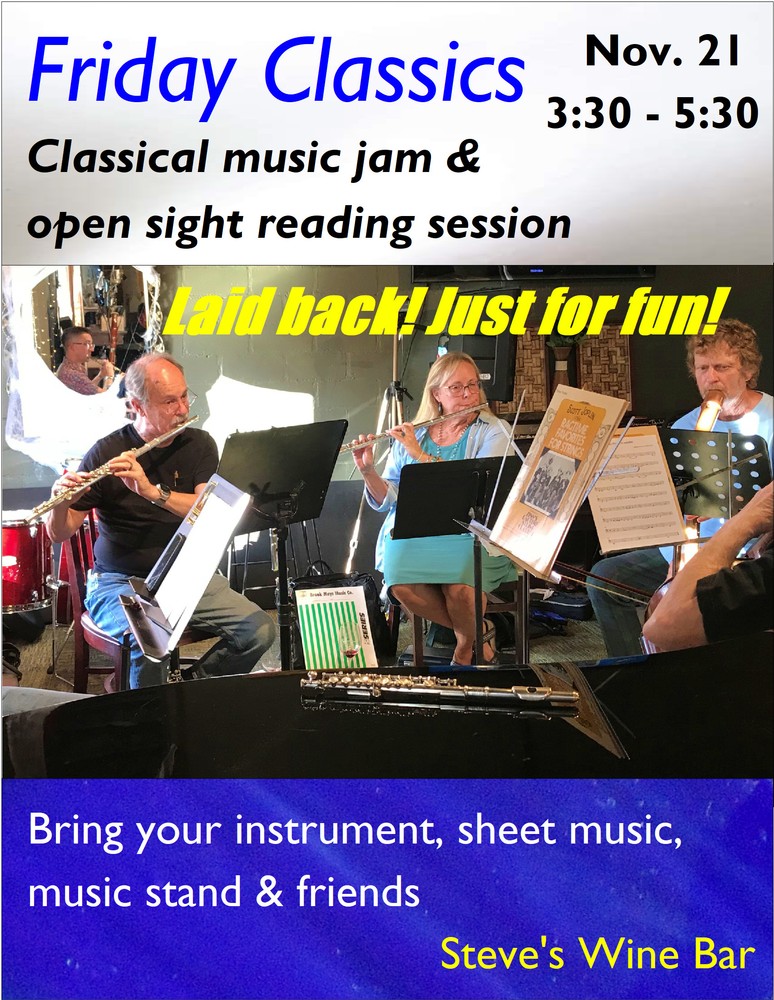 Bring your instrument, sheet music, and music stand, and join in the fun as we play through a variety of musical classics.